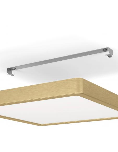 La lámpara adosada LED FUEVA 5 de metal con acabado en latón cepillado y su altura reducida de solo 28 mm se adapta a casi todas las tendencias de decoración. Las bombillas LED integradas emiten una agradable luz blanca cálida y quedan ocultas por el difusor blanco. Debido a la baja altura de instalación, la lámpara de techo también se puede utilizar como lámpara de pared sin ningún problema. La lámpara de alta calidad sin uniones atornilladas visibles en la carcasa es particularmente fácil de instalar gracias al soporte de techo especial. El diseño atemporal de la lámpara adosada, con su tamaño de 285 x 285 mm, permite utilizarla en cualquier estancia, ya sea en el salón, el dormitorio, el pasillo o el comedor.