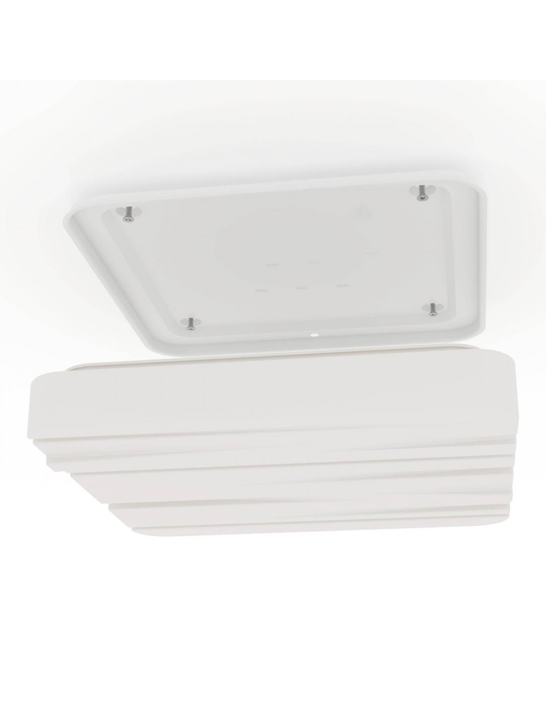 Plafón LED cuadrado con detalles en su pantalla acrílica blanca y base de acero también en blanco. Perfecto para iluminar un salón, comedor, dormitorio e incluso una cocina de tamaño mediano-pequeño. Olvídate de las bombillas y consigue un plafón de luz blanca cálida como este, ¡no te arrepentirás!