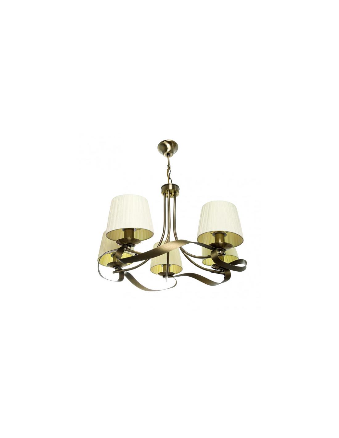 Lampara Baeza 5xe14 Cuero Pantalla Beis Regx55x55 Cm