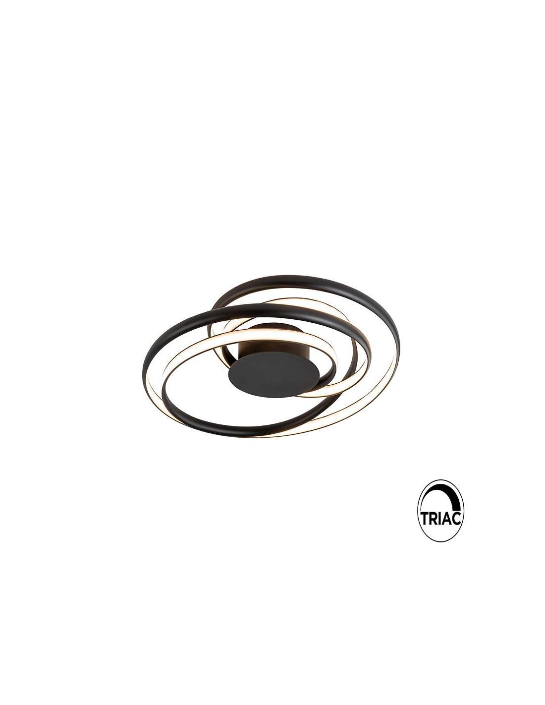 Plafón de techo realizado en metal y aluminio acabado negro mate arenado. Difusor opal de silicona. 75W LED. 3,252 lm. 3.000 K. DIMABLE.
