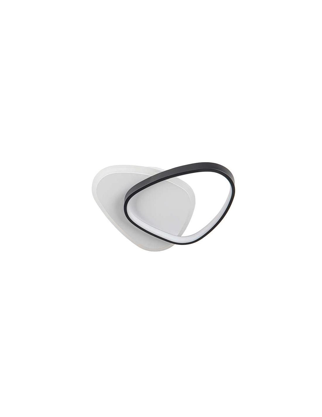 Plafón de techo o aplique de pared, realizado en metal acabado en blanco y negro mate. Difusor de acrílico opal. 28W, 3024lm, 3.000K