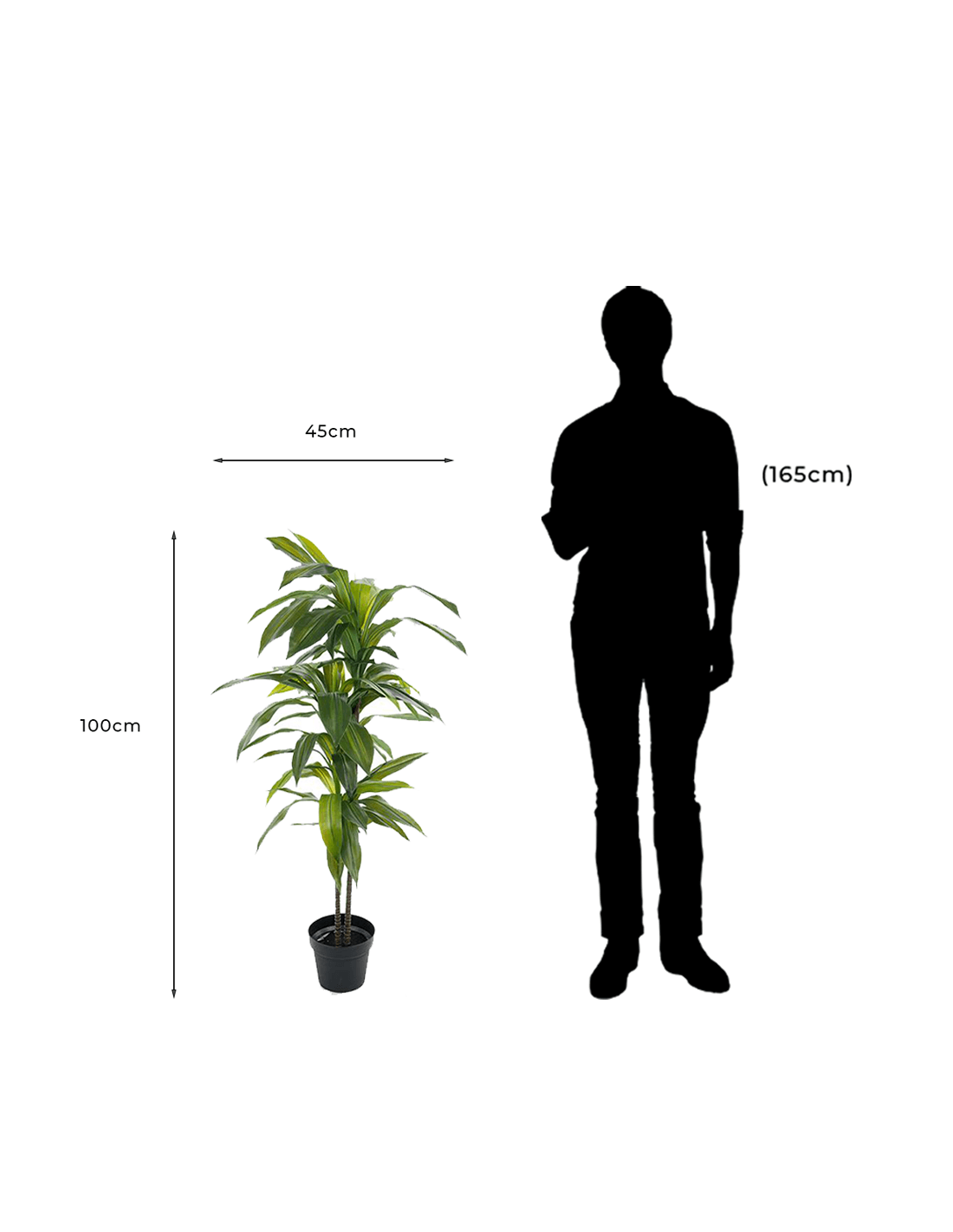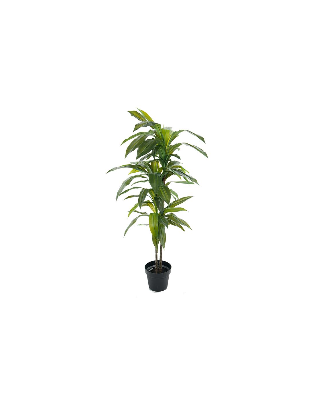 La Dracena es una planta que debido a su tamaño y a sus grandes pero finas hojas hacen de esta una de las más vistosas del mercado. Compuesta por dos tallos y diversas hojas verdes y amarillas que se arquean hacia abajo formando bastante volumen a su alrededor.