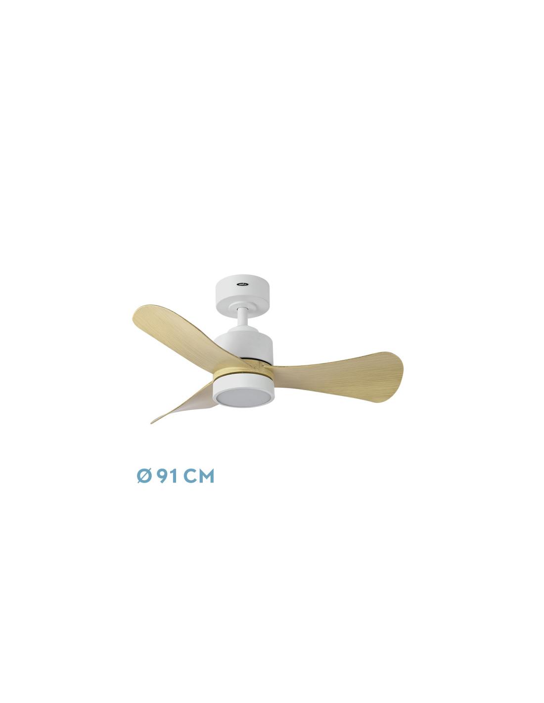 Ventilador Dc Zepelin 18w 1900lm Blanco/haya 3aspas 91d 3000-4000-6500k Remoto,memoria Y Temporizador