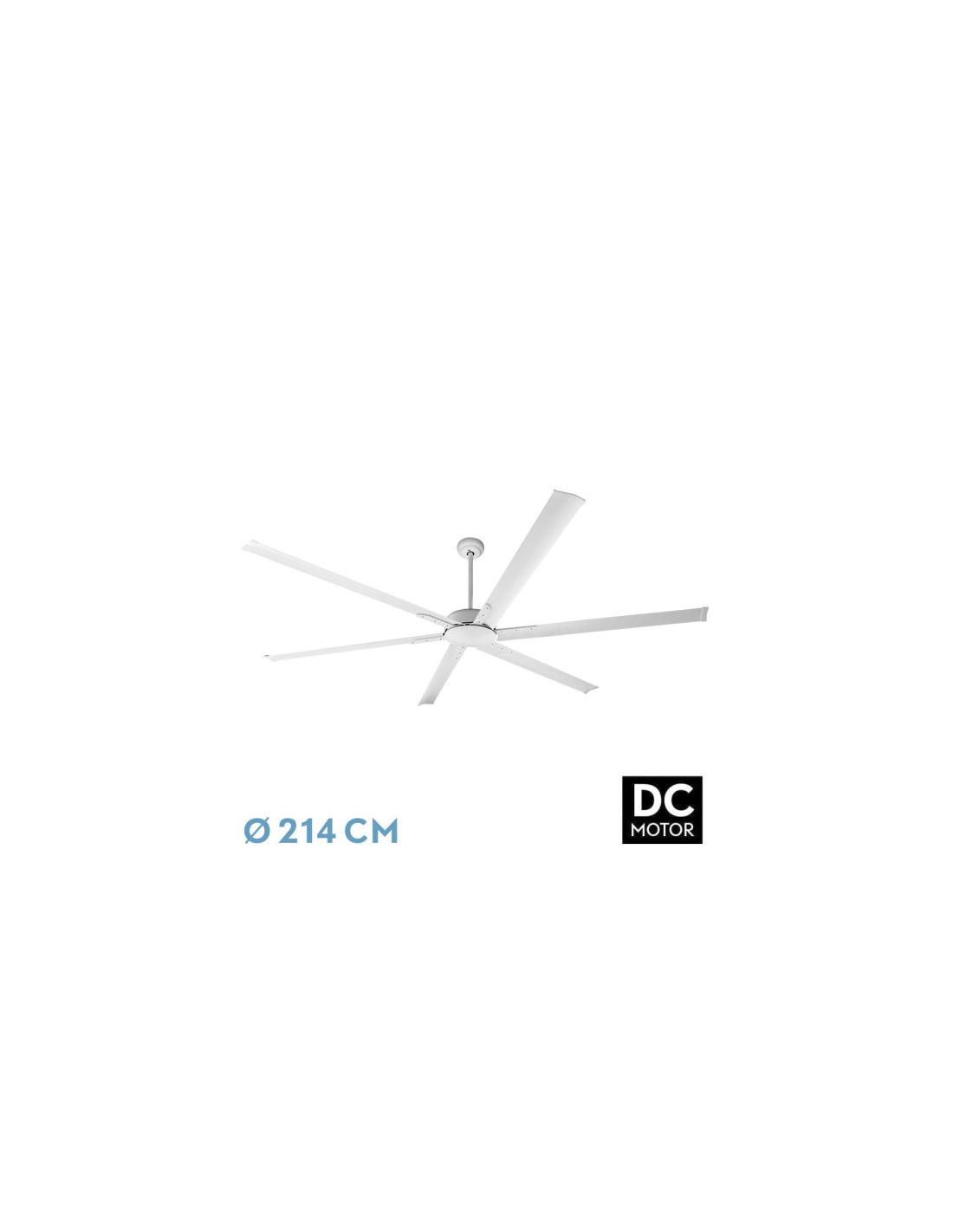 Ventilador DC de la serie ALMANZOR realizado en metal, aluminio y policarbonato, en color BLANCO con seis aspas. Tiene seis velocidades ajustables con motor DC. Tecnología LED incorporada con una potencia de 24W, 2950 lúmenes y 3 TEMPERATURAS SELECCIONABLES DE LUZ( 3000-4000-6000K) luz cálida, natural y blanco frío. Ventilador de gran tamaño con aspas en aluminio, ideal para locales, oficinas, salones y estancias abiertas, con un diseño muy moderno y elegante, tomando parte en la decoración de su hogar o trabajo. Tiene unas dimensiones de 32/45x214x214 centímetros, incluye dos medidas de TIJA lo que permite instalarlo a distintas alturas de techo. Control de aire verano o invierno. Mando a distancia INCLUIDO con REGULADOR DE INTENSIDAD DE LA LUZ, MEMORIA DE COLOR incorporada y TEMPORIZADOR que permite programar para que el ventilador se apague automáticamente desde los 30 minutos hasta las 2 horas, lo que conlleva un gran ahorro de energía.