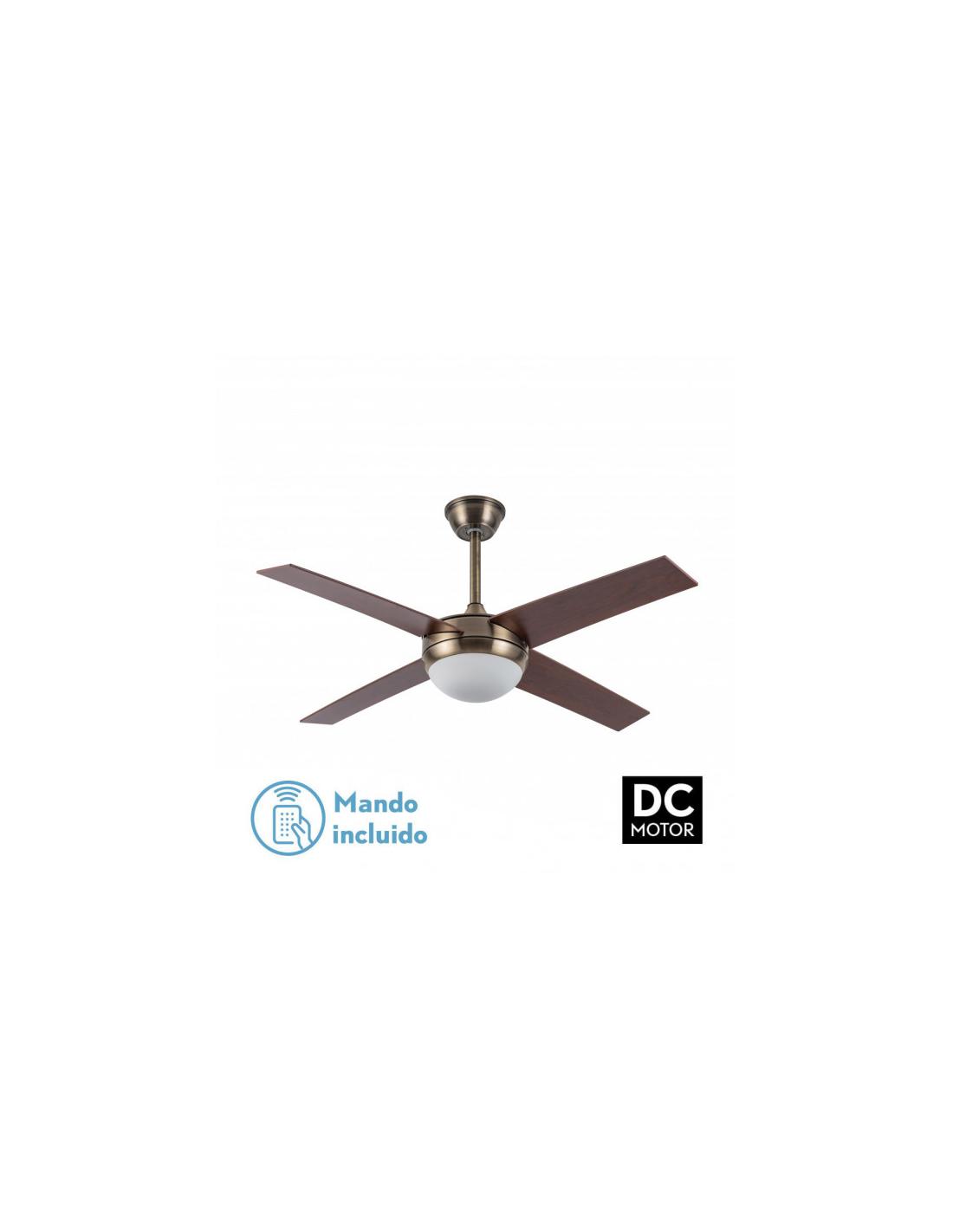 Ventilador Dc Ciro 2xe27 Cuero 4 Asp. Nogal 35/45x116,8d Remoto Y Temporizador