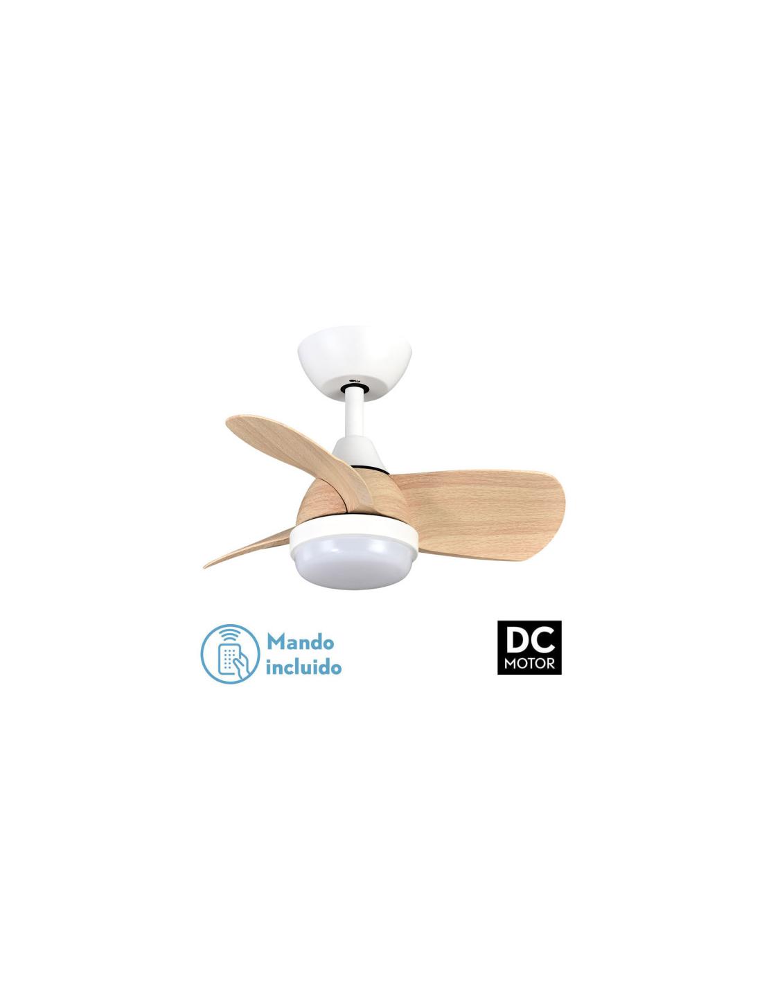 Ventilador Dc 24w Pirdo Blanco/haya 3 Aspas 60d 2400lm 6 Velocidades 3000-4500-6000k C/remoto, Memoria Y Temporizador