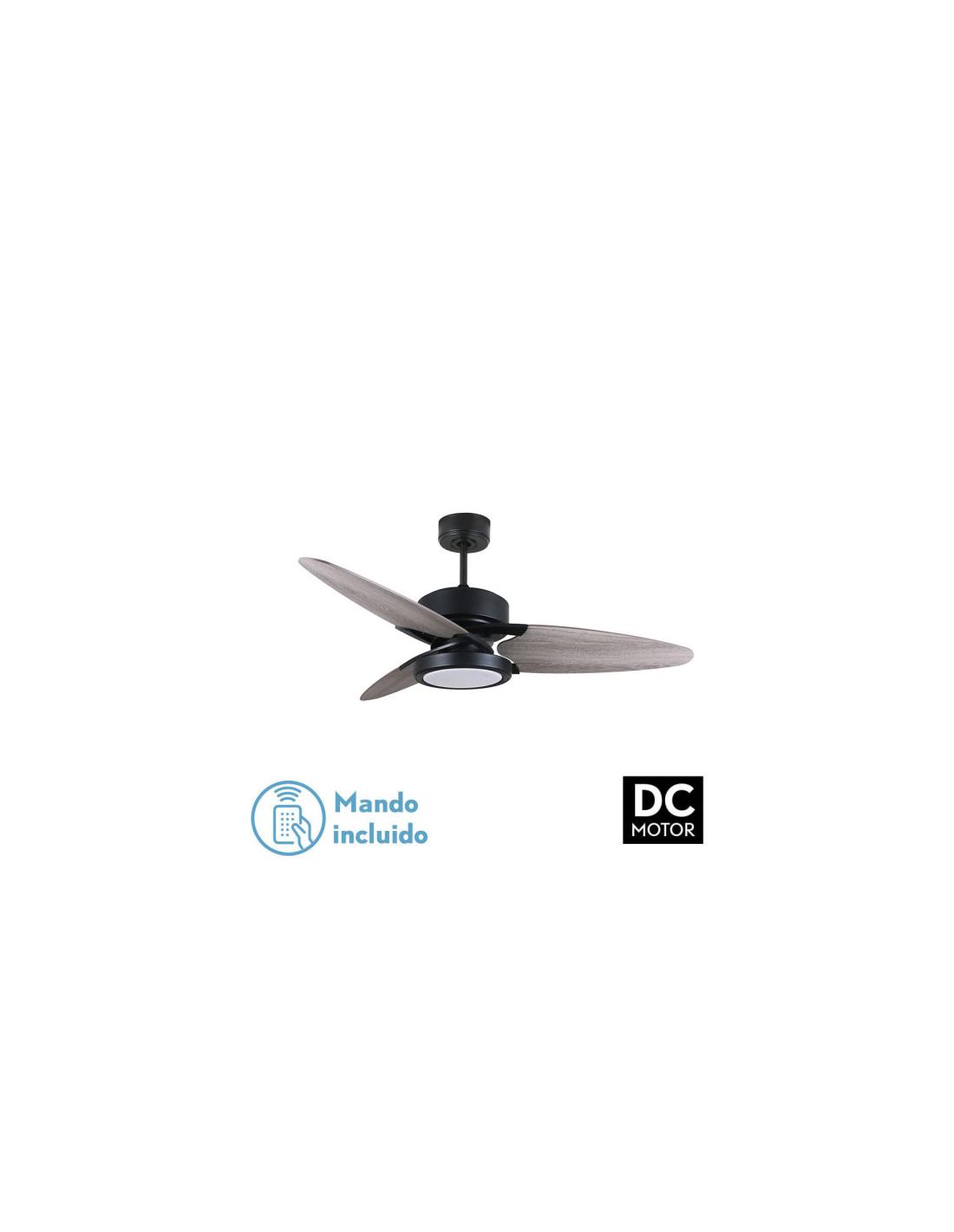 Ventilador Dc Cross 30w Negro 3 Aspas Gris/roble 6vel. 3 Colores 3250lm 132d Remoto, Memoria Y Temporizador