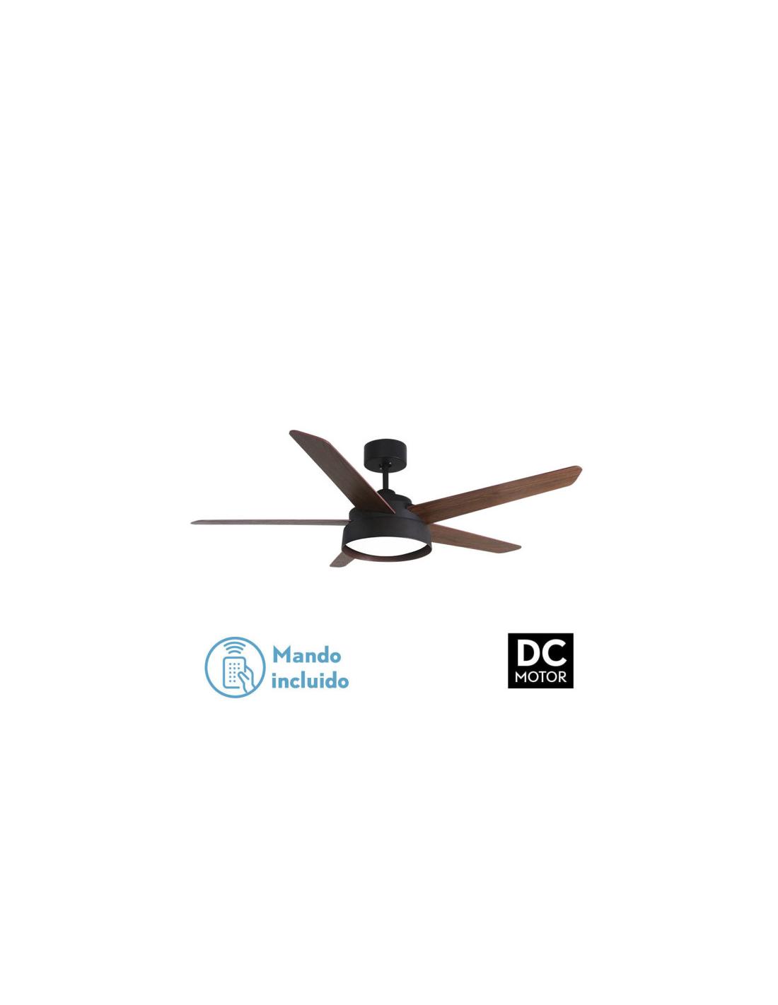Ventilador 25w Dc Marron Lebeche 5 Aspas Rev. Nogal/roble 6 Vel. 3000-4000-6000k 132d Remoto,memoria Y Temporizador