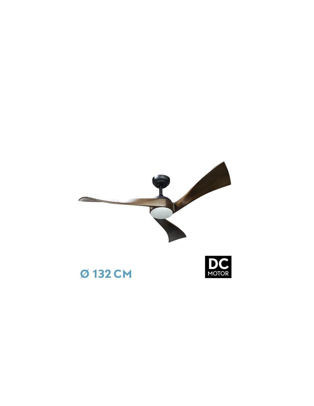 Ventilador DC de la serie JANUBI en color NEGRO y tres aspas en color ROBLE. Realizado en metal, madera y cristal. Motor DC con seis velocidades. Tiene TECNOLOGÍA LED integrada con 22 watios de potencia , 2350 lúmenes y TRES TEMPERATURAS SELECCIONABLES DE LUZ 3000-4000-6000k (cálida, blanco natural y blanco frío). Sus dimensiones son 35/47,5x132x132 centímetros, con dos medidas de tijas para instalar a diferentes alturas. Trae MANDO A DISTANCIA incluido con REGULADOR DE INTENSIDAD, MEMORIA DE COLOR y TEMPORIZADOR para poder seleccionar que el ventilador se apague automáticamente desde los 30 minutos hasta las 2 horas. Control de aire verano/invierno. Disponible en esta serie en color blanco/haya, negro/roble y níquel/haya.