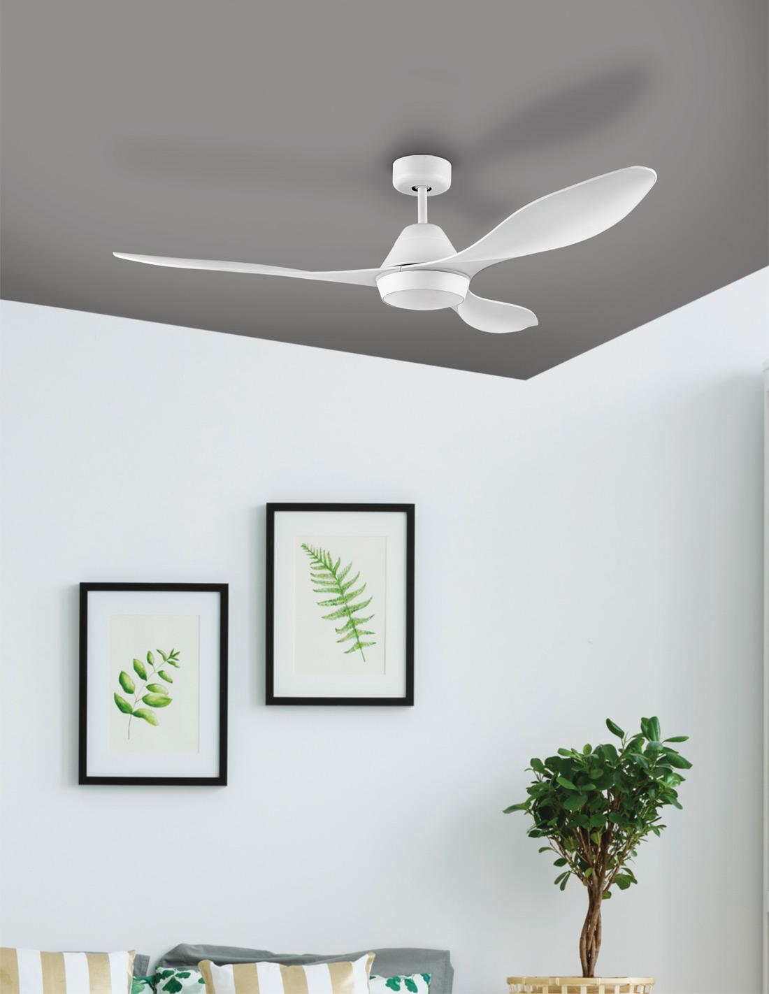 ANTIBES es un ventilador de techo con luz y 5 velocidades. Cuenta con un motor de corriente continua (DC) de bajo consumo. Dispone de la función inversa e incluye mando a distancia. Está fabricado en ABS en blanco. Utiliza LED integrado de luz fría (4.000k).