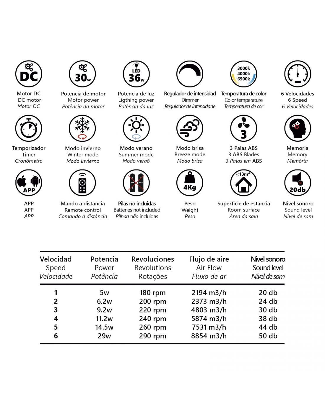 LUZ LED 36W 3000K,4000K,6500K