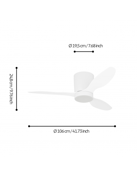 El ventilador de techo BARCARÈS en blanco impresiona con un diámetro de 1060 mm y una altura de 350 mm. Con un motor DC de 25 vatios, un caudal de aire de 7800 m³/h, así como una potencia LED de 20 vatios, 3000 lúmenes y luz blanca regulable, combina una potente circulación de aire con una iluminación ajustable de forma flexible.