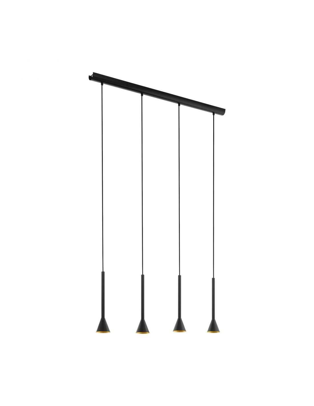 Reference EGLO 97605 is a led pendant lamp from the CORTADERAS Collection with the following technical characteristics 4X5W 220-240V,50/60Hz. It is characterized by the use of steel materials as the main part. Its black color stands out in the lamp. Includes features like 3-step Dimmable. Requires 4 GU10 socket bulbs (included). The manufacturer of this collection is EGLO, prestigious marca that stands out for the quality of its designs and for being a world leader in lighting.