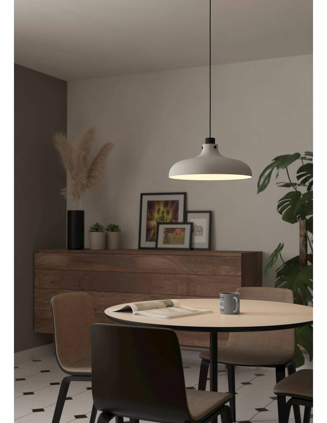 Steel pendant lamp with gray shade and black base. Perfect and very versatile for various types of decoration, such as industrial, Nordic or rustic. Its cable is dimmable and uses an e27 socket bulb, not included.
