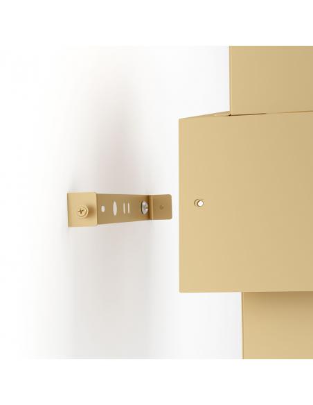 Wall lamp made of gold-colored steel with a very modern and careful eclectic design. It emits its light from its central base and uses an E27 socket bulb, not included.