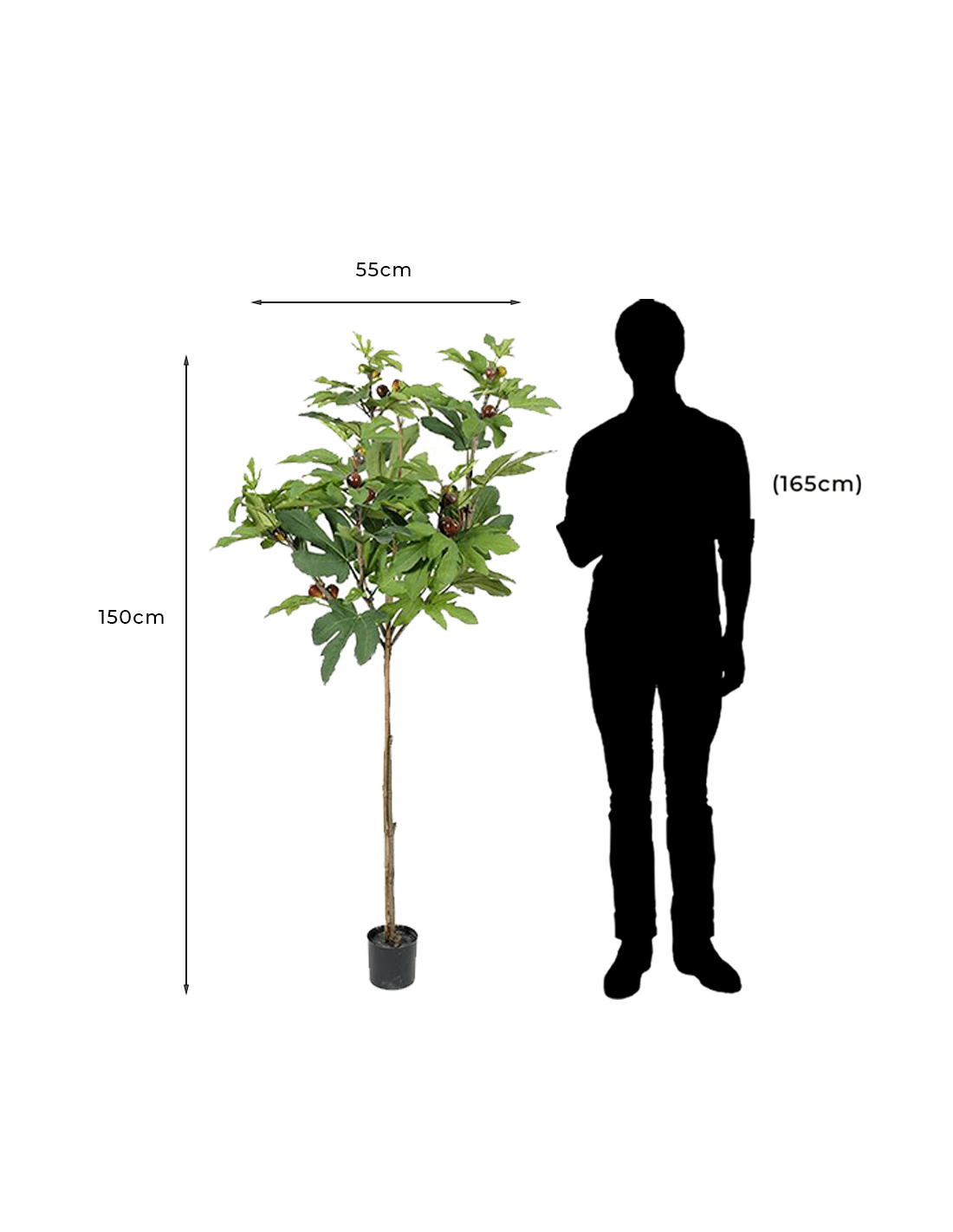The artificial Fikon tree is composed of a narrow stem and leaves with artificial fruits between them, perfectly simulating a realistic tree but with the convenience of not having to water or prune it.