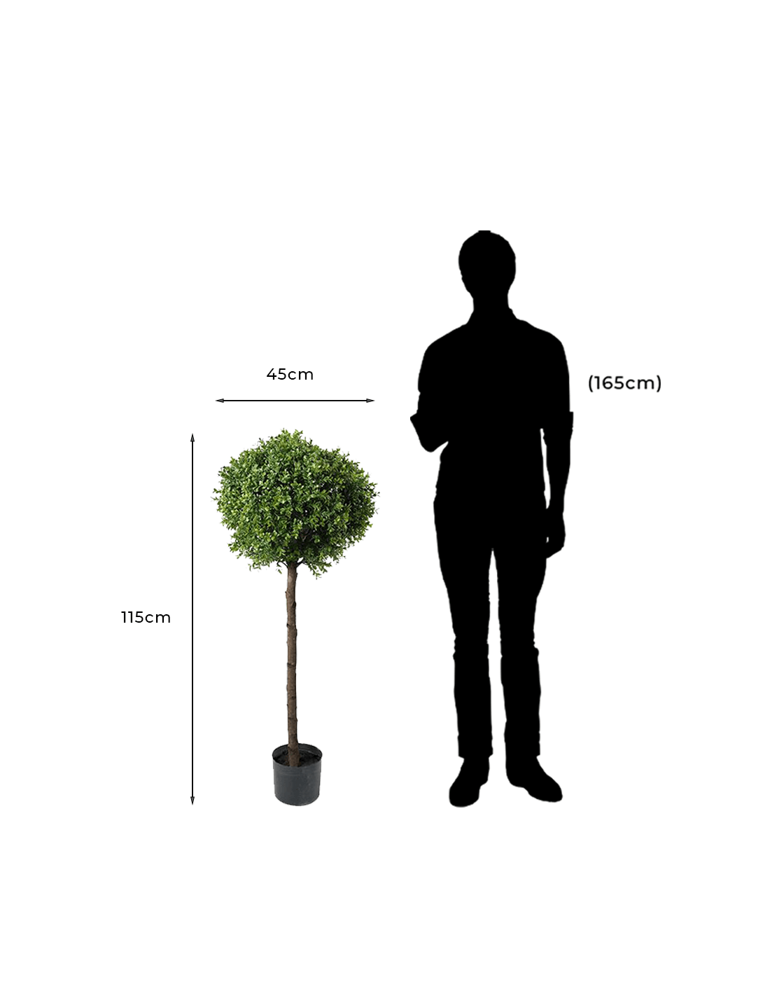 The artificial Buxbom tree is a common boxwood, shrub or small evergreen tree. Made of plastic materials and dyes of the highest quality and durability. It belongs to our catalog of realistic artificial plants. Create that natural and fresh atmosphere you are looking for in your rooms with this careful decorative accessory.