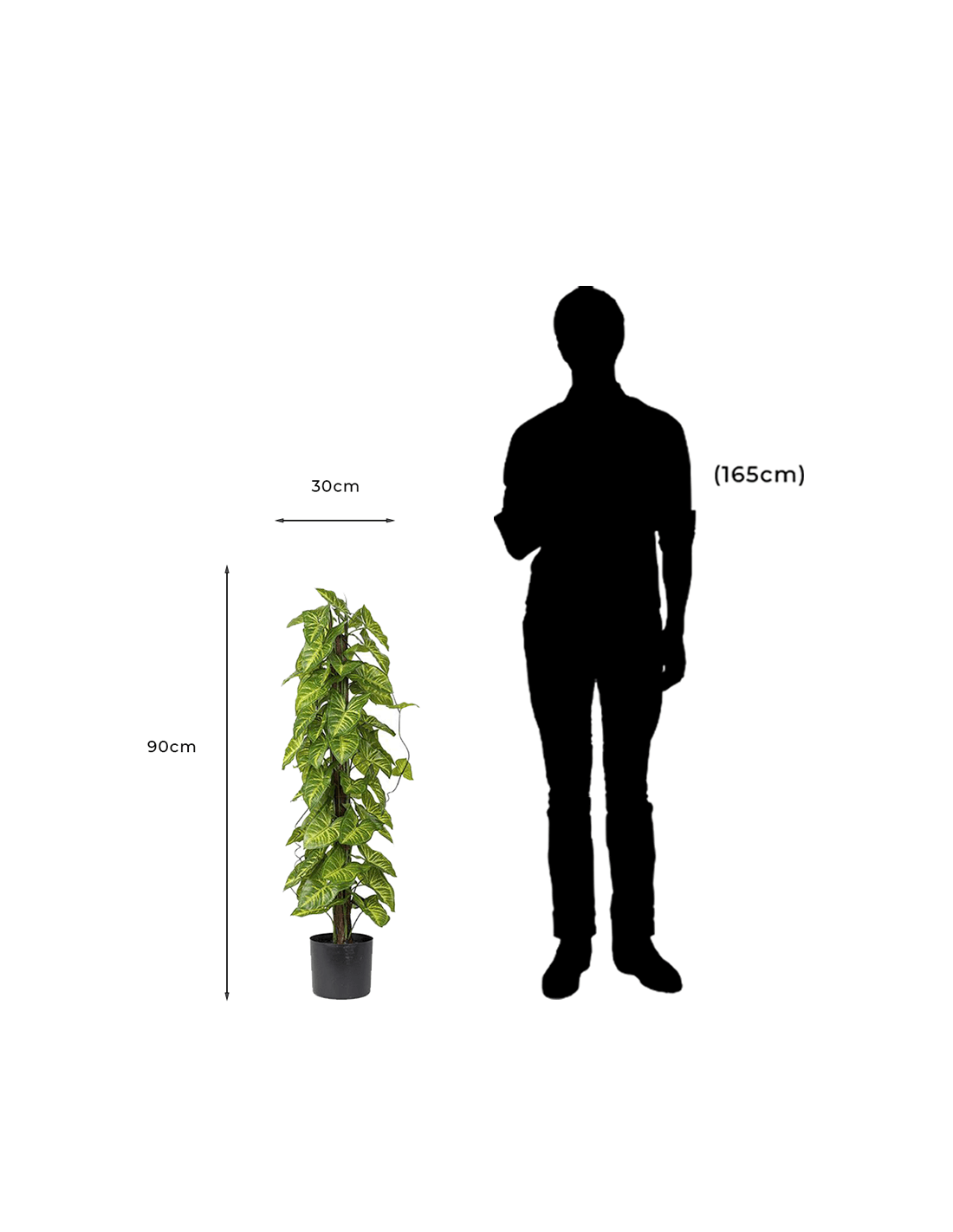 We recommend the use of our plants only indoors not exposed to the weather (direct sun and water). Our plants are foldable so the dimensions may differ.