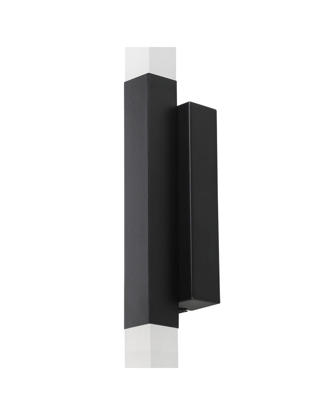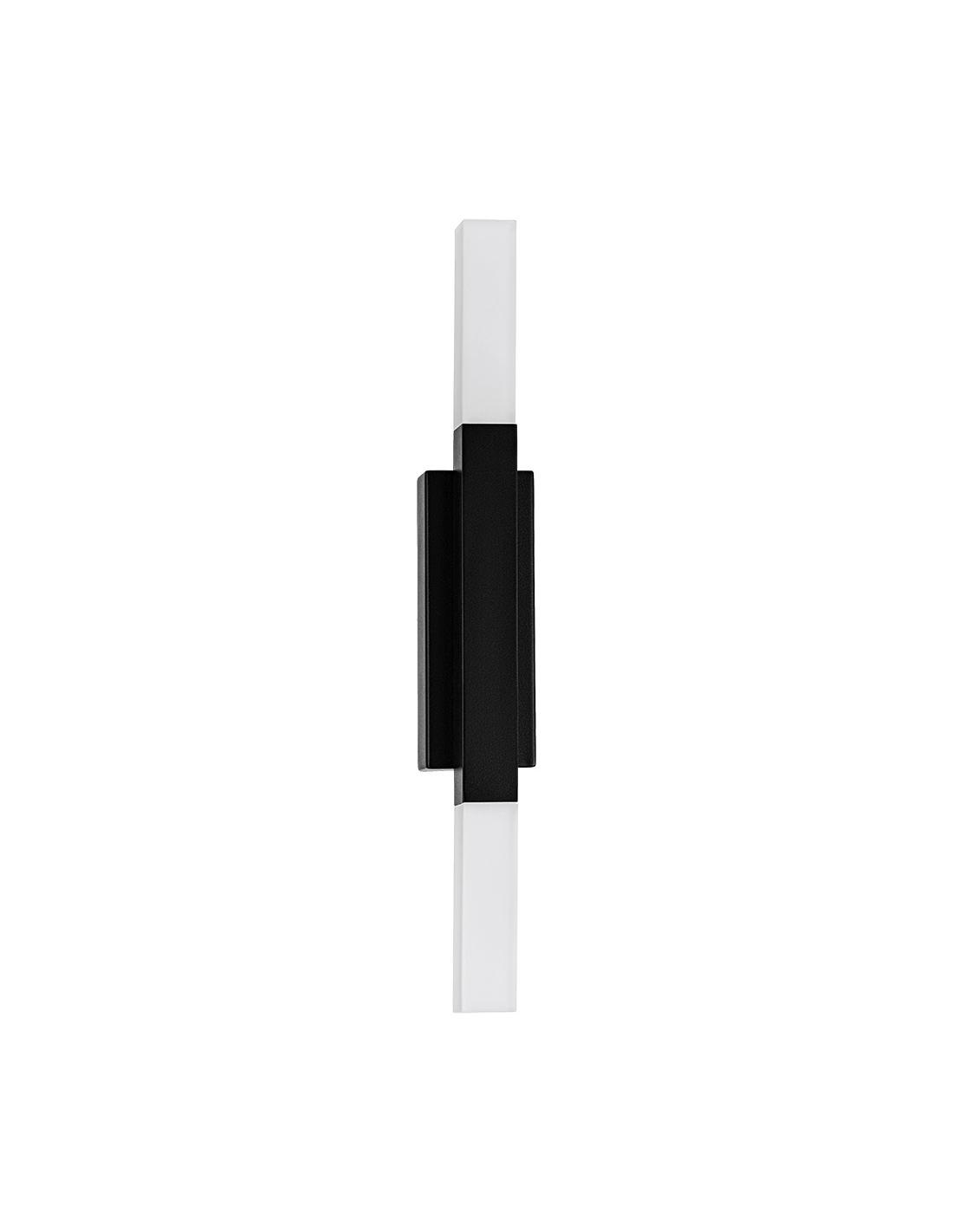 Led mirror lamp or Led wall lamp with black steel base and satin white acrylic shades. It has two built-in leds with a total of 1200 lumens and emits a warm white light of 3000k. In addition, it is suitable for use in bathrooms due to its IP44 protection degree.
