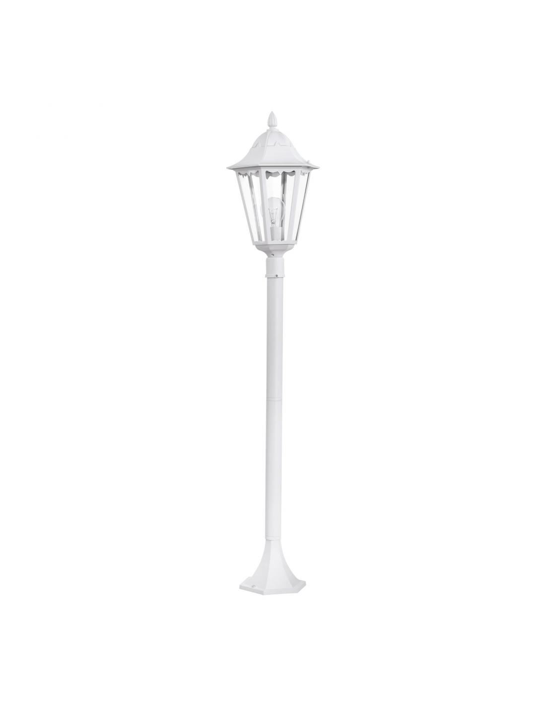 Classic style mini street lamp in white. This outdoor beacon is made of cast aluminum with glass screens. It has a height of 1.2 meters and has an IP44 protection degree. Requires an E27 socket bulb, not included.