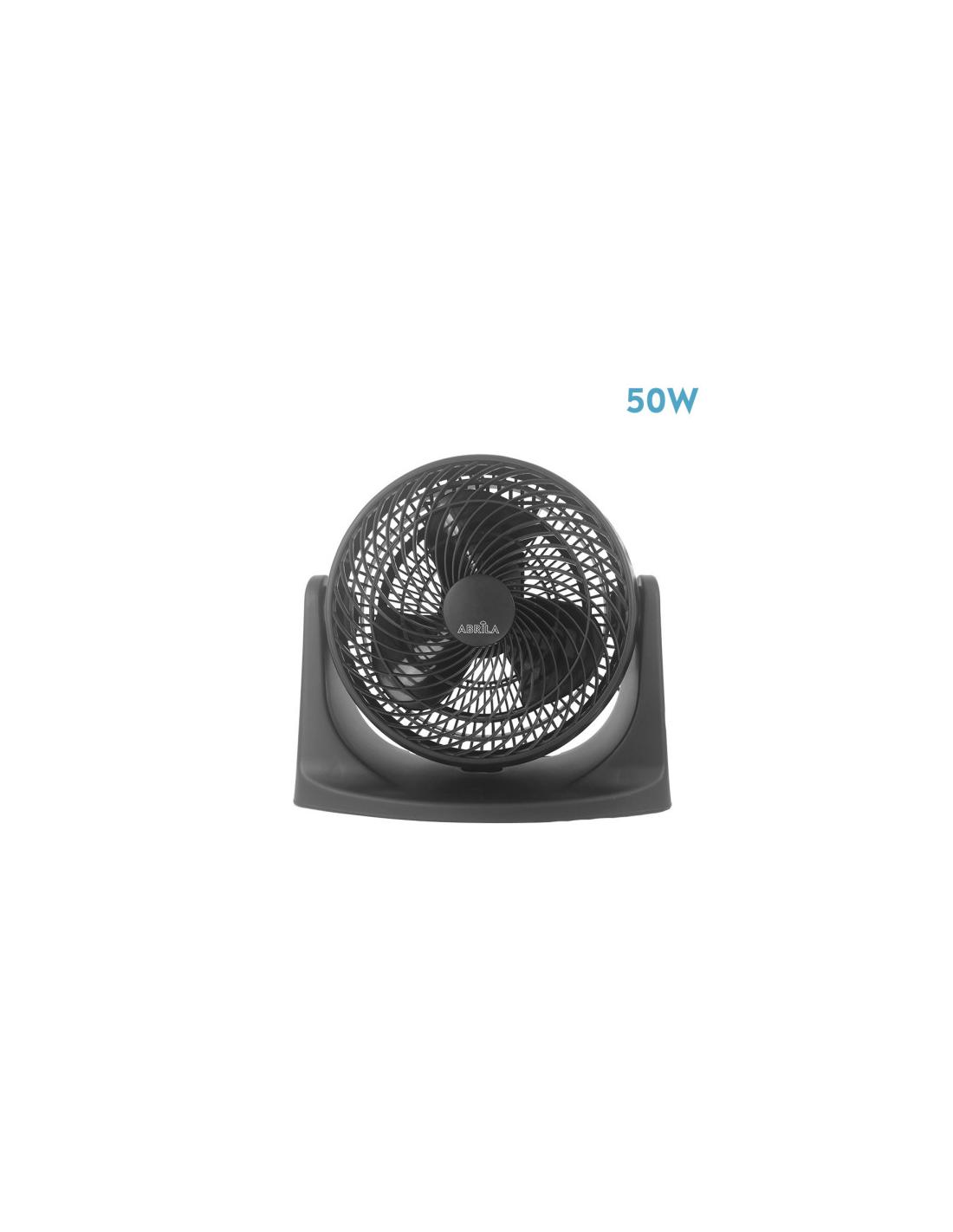 Desktop fan from the BALBOA series made of polycarbonate, in BLACK color with three blades and three speeds. AC motor. Head can be adjusted in the vertical plane, being able to redirect the air to the desired area. Lightweight and small in size, it can be used both on floors and on a countertop, easy to transport. It has a power of 50 watts and a measurement of 26x28.5x26 centimeters. Model available in white and black.