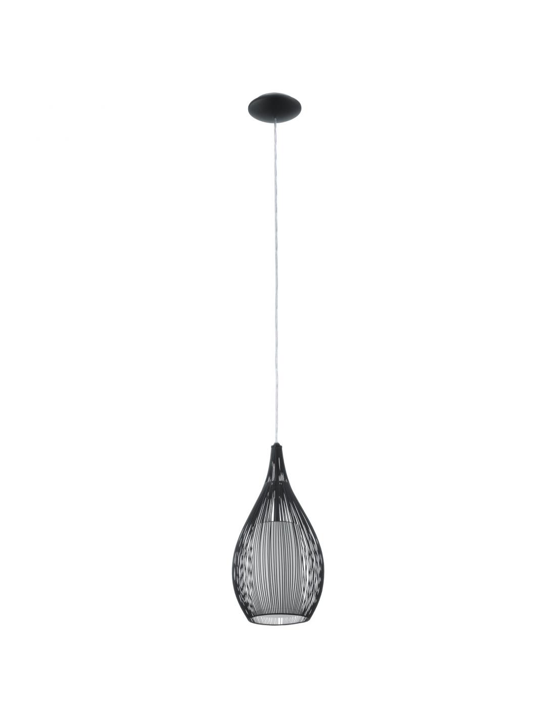 RAZONI is a collection of the marca EGLO that is characterized by its teardrop-shaped design. Wire structure made of steel and internal shade in satin glass. The collection is available in two models and colors. You can find it in black and white, and with one or three points of light.
