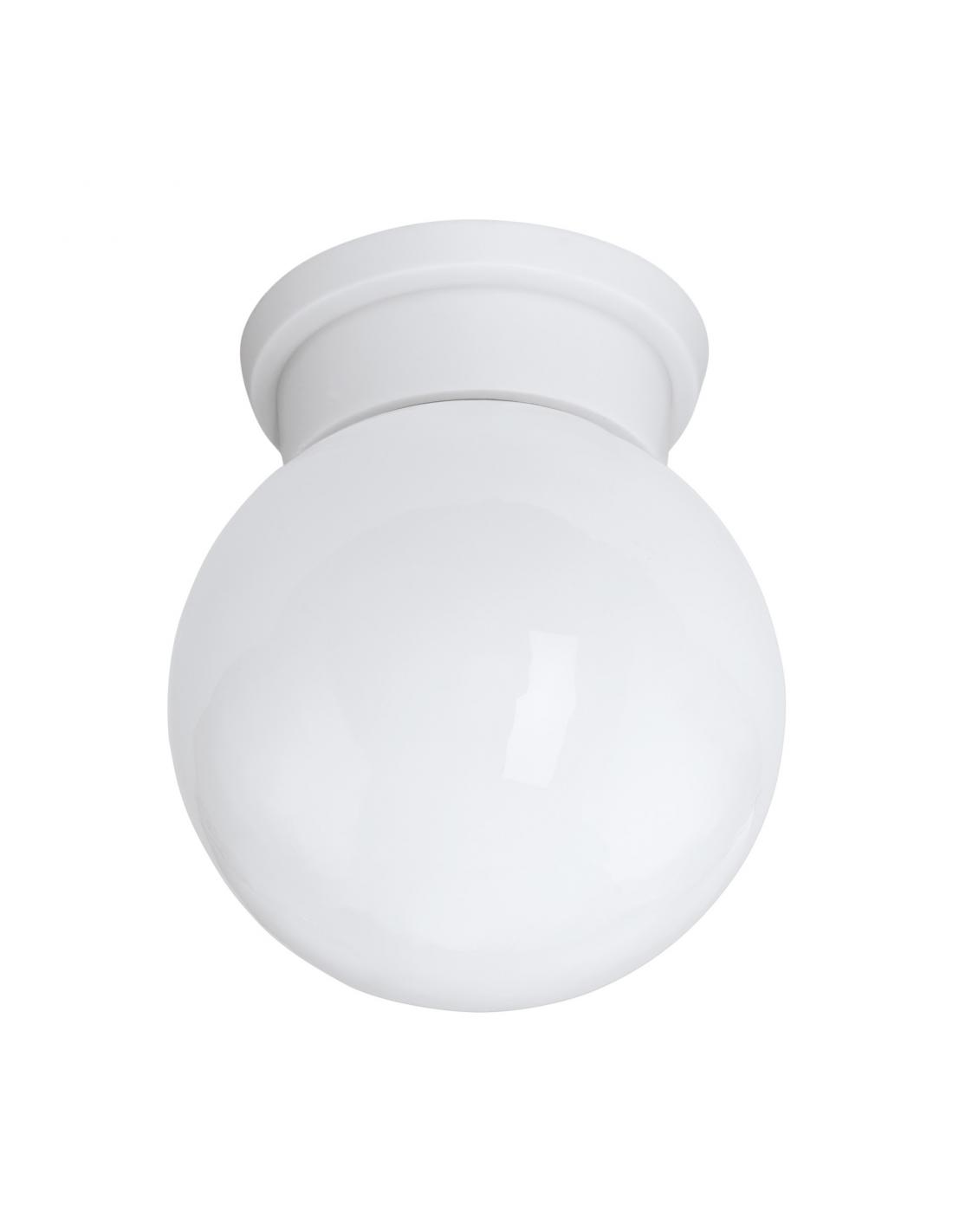 Ceiling lamp made with a white opal glass sphere installed on an acrylic base of the same color. Use an E27 socket bulb. This model is perfect as an extra light point or for small rooms. A simple and functional ceiling lamp.