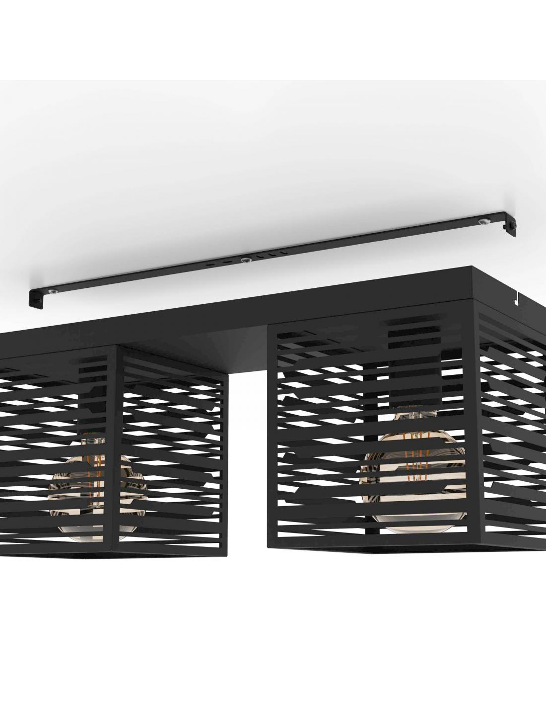 The PIEDRITAS ceiling lamp is made of two square metal bodies with elongated cuts that create a fascinating play of light and shadow as soon as it is turned on. The ceiling lamp fits into modern styles and provides evocative lighting in any room, whether it is the kitchen, living room, bedroom or hallway. The filament bulbs shown are not included. The lamp is suitable for any bulb with an E27 socket.