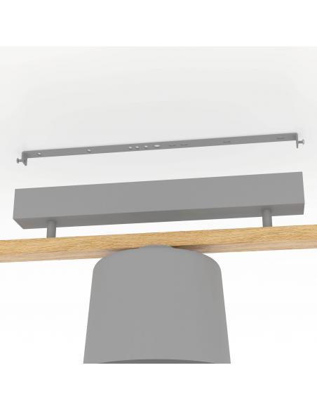 3-light gray ceiling lamp with wooden bar and steel structure, ideal for any room in your home. Decorate your Nordic living room with this lamp, with e27 sockets (bulbs not included) and, give it a different and renewed look!