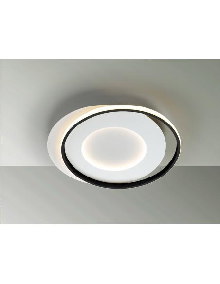 Ceiling light made of metal and aluminum, matte white and black finish. Opal silicone diffuser. 40W LED. 4,400 lm. 4,000 K.