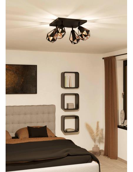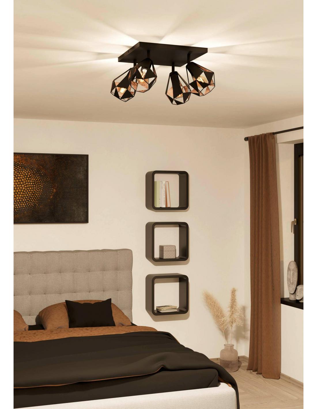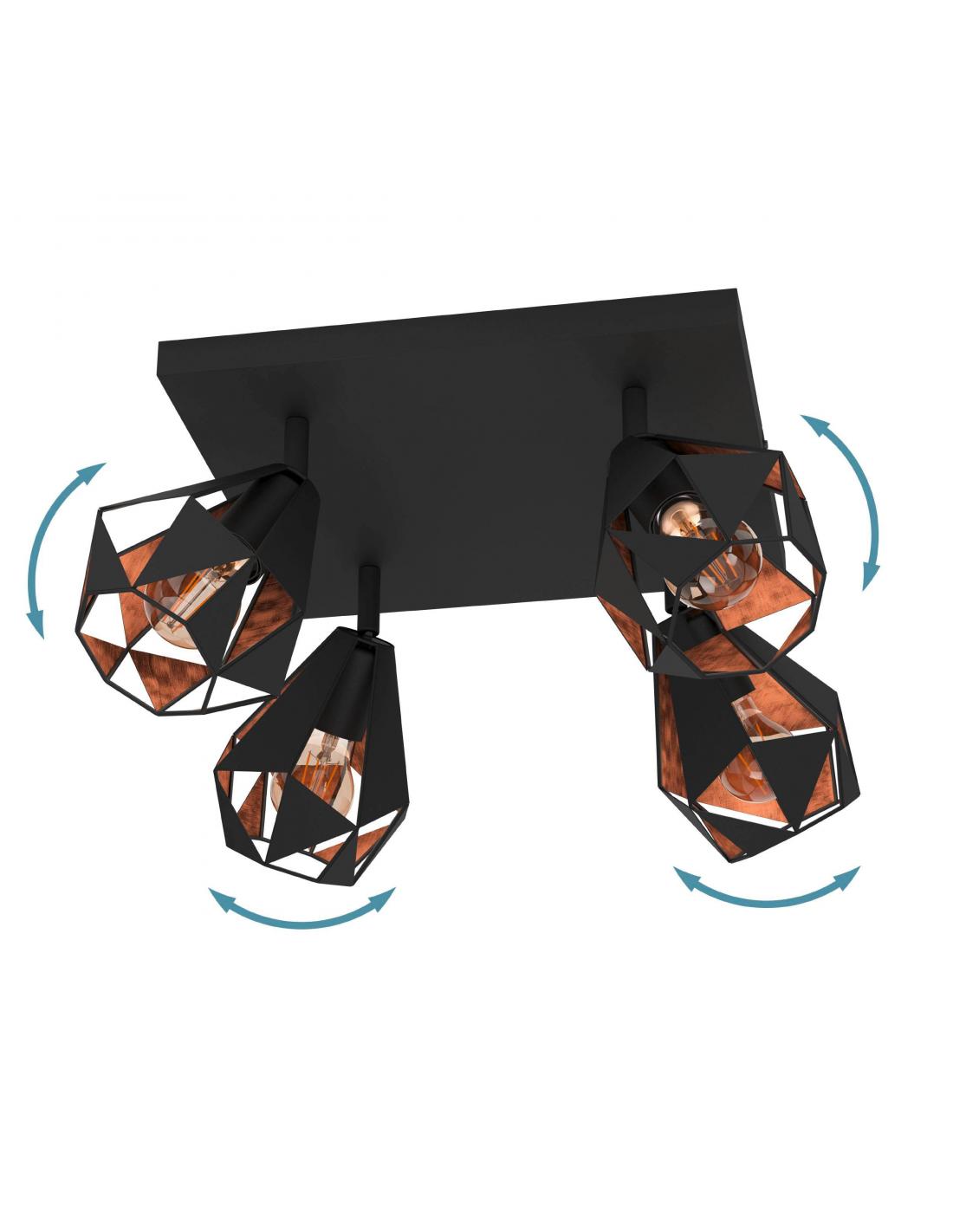 4-light ceiling lamp black steel and copper - EGLO Carlton8