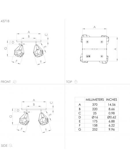 The CARLTON 7 ceiling lamp is made of black metal and has four movable diamond-shaped shades with an aged copper color inside. The geometric openings in the screens create a fascinating play of light and shadow on the ceiling. The ceiling lamp completes modern style trends and looks good in any room, whether in the kitchen, living room, bedroom or hallway. The filament bulbs shown are not included. The lamp is suitable for any bulb with an E27 socket.