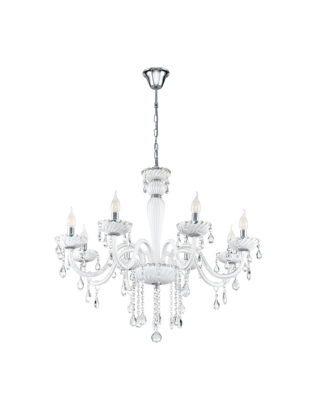 8X40W 220-240V,50/60Hz. It is characterized by the use of materials in Steel as the main part and Glass for the screen. Combine colors such as Metallic in the lamp and white for the shade. Requires 8