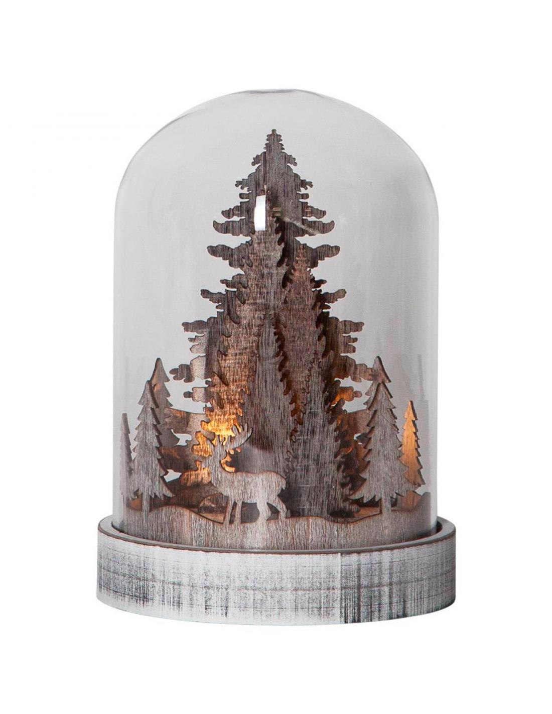Christmas dome in aged brown color with a distressed effect ideal for decorating your living room or Christmas entrance. It works with 3 AA batteries, not included, and is made of wood with a glass dome and acrylic base. It has a timer function so that it is on for 6 hours, turns off automatically, and turns on again the next day (18 hours). Don't worry about plugging everything in!