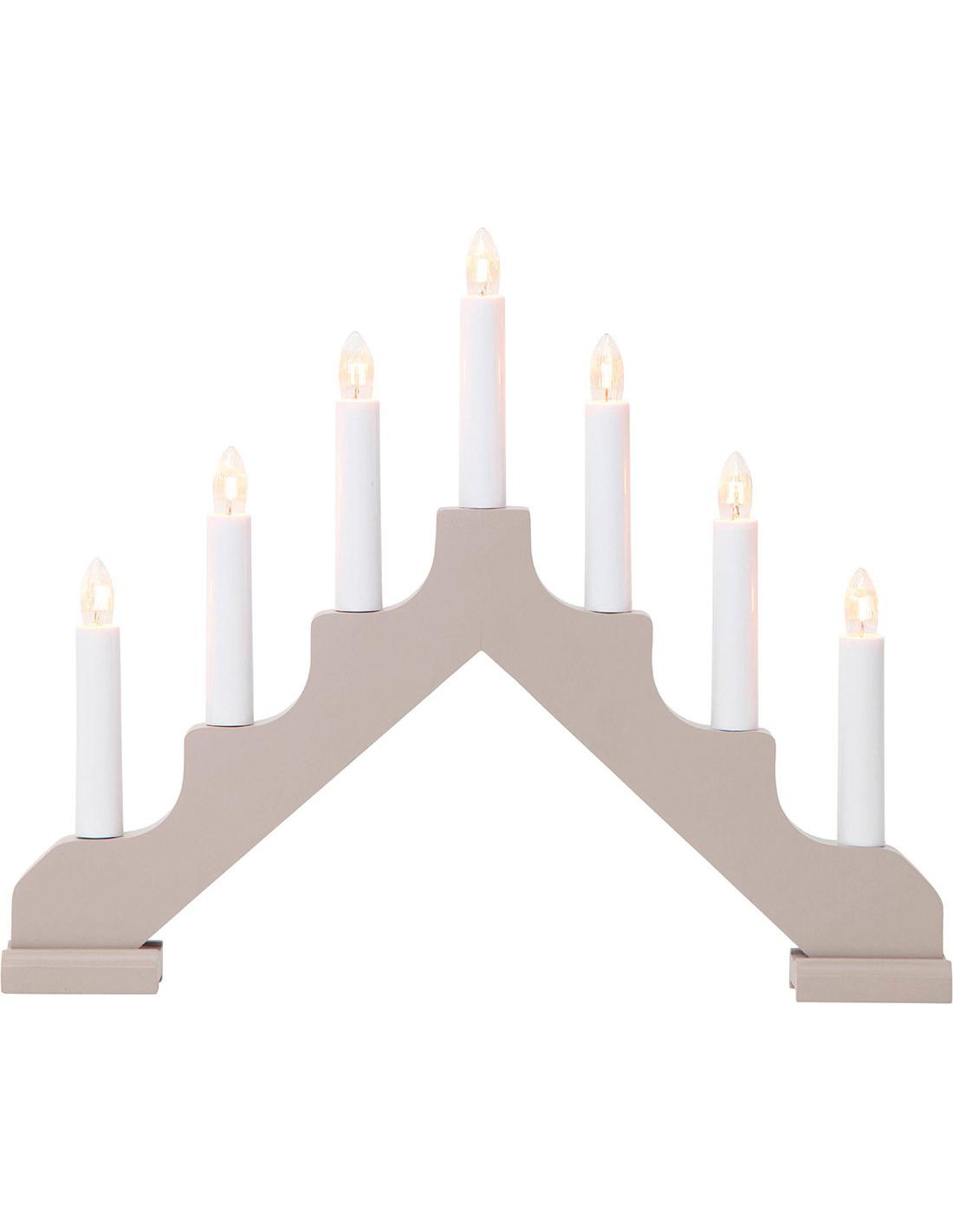 Christmas candlestick made of gray wood that reminds of Jewish candlesticks, a different and very special decoration star. Includes 7 LED lights that work connected to the light.
