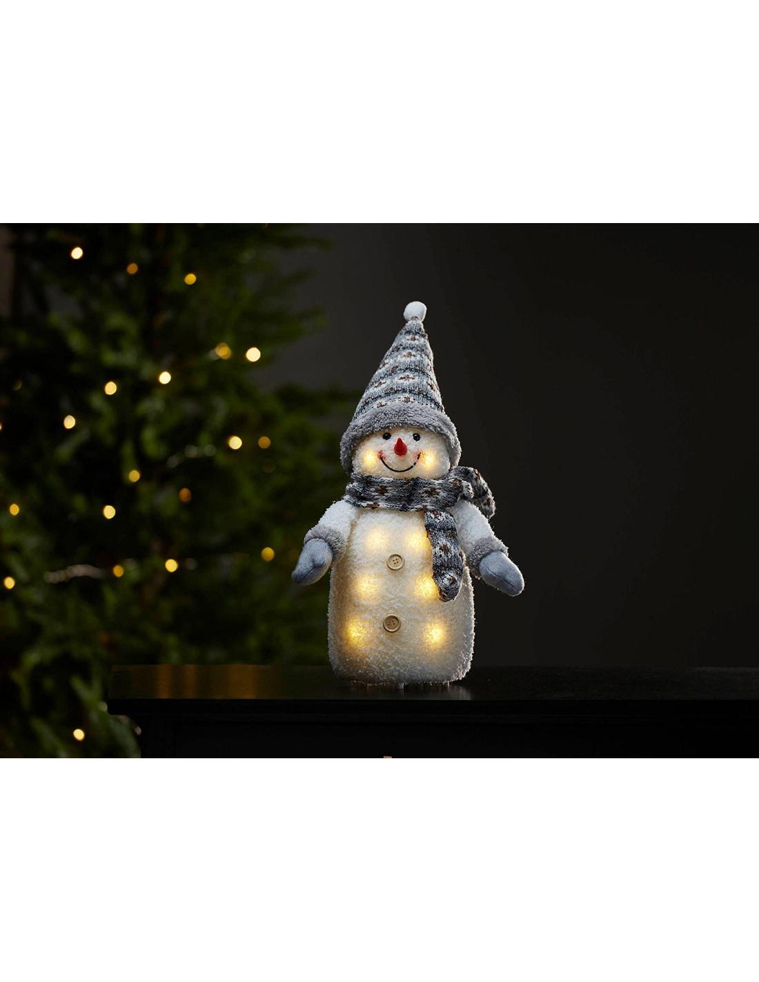 Large size snowman decorative with LED light and accessories in gray color. Works with 3 AA batteries, NOT INCLUDED.