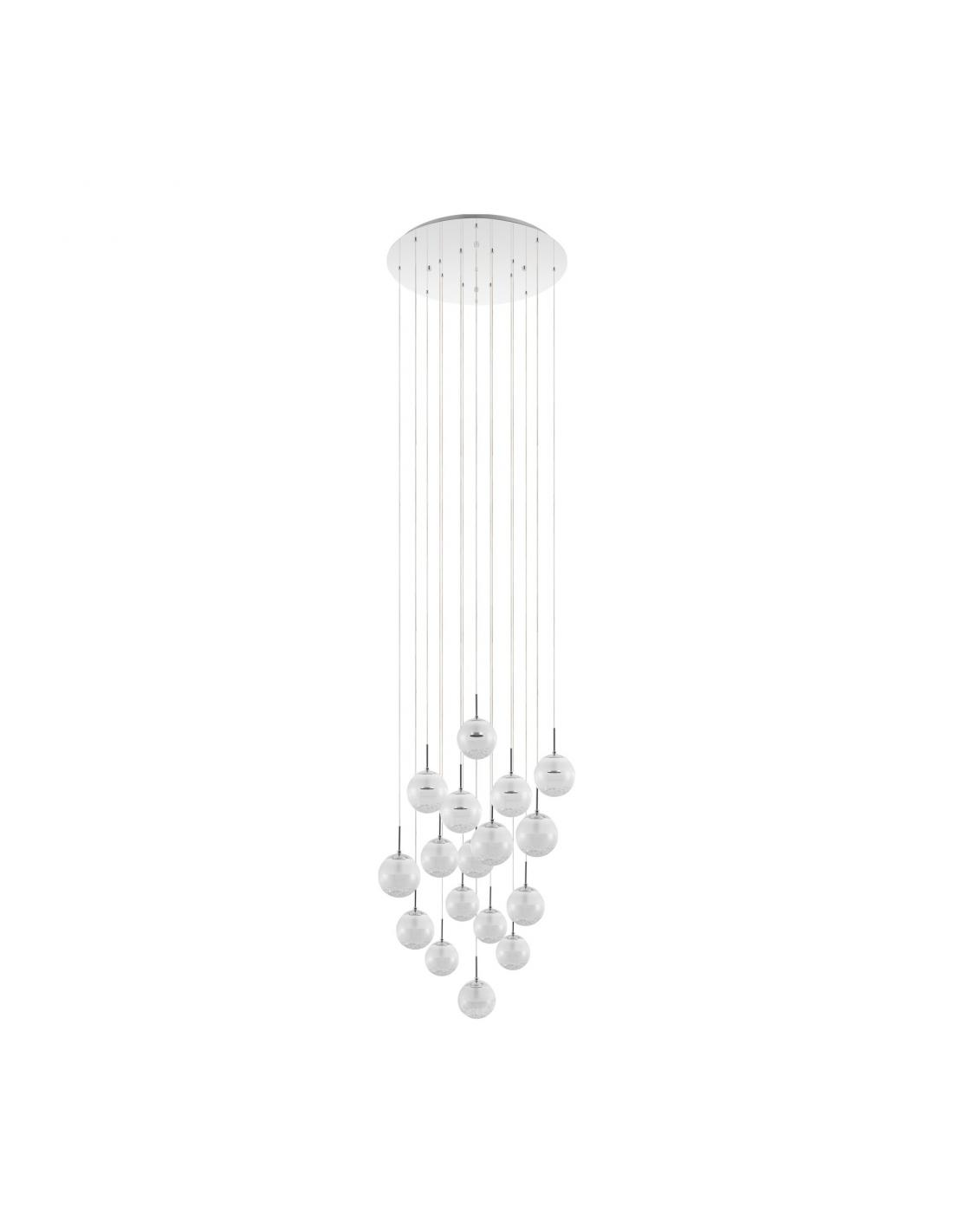 Reference EGLO 39547 is a crystal pendant lamp from the MONTEFIO 2 Collection with the following technical characteristics 17X5W 220-240V,50/60Hz 3000K. It is characterized by the use of materials in Steel as the main part and Glass, glass for the screen. Combine colors such as Metallic in the lamp and white, clear for the shade. It has an INTEGRATED LED. The manufacturer of this collection is EGLO, prestigious marca that stands out for the quality of its designs and for being a world leader in lighting.