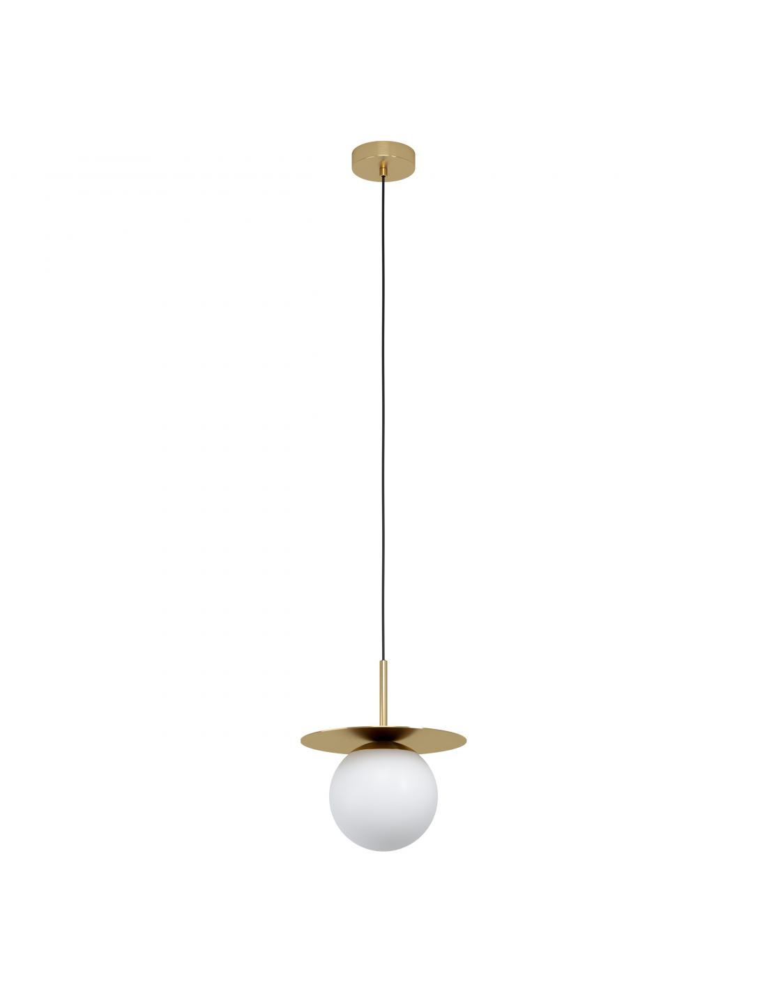 The ARENALES Lamp is an excellent Crystal Pendant Lamp, made by EGLO, in brushed brass steel and matte opaline glass in white. Requires E27 bulbs, NOT INCLUDED.