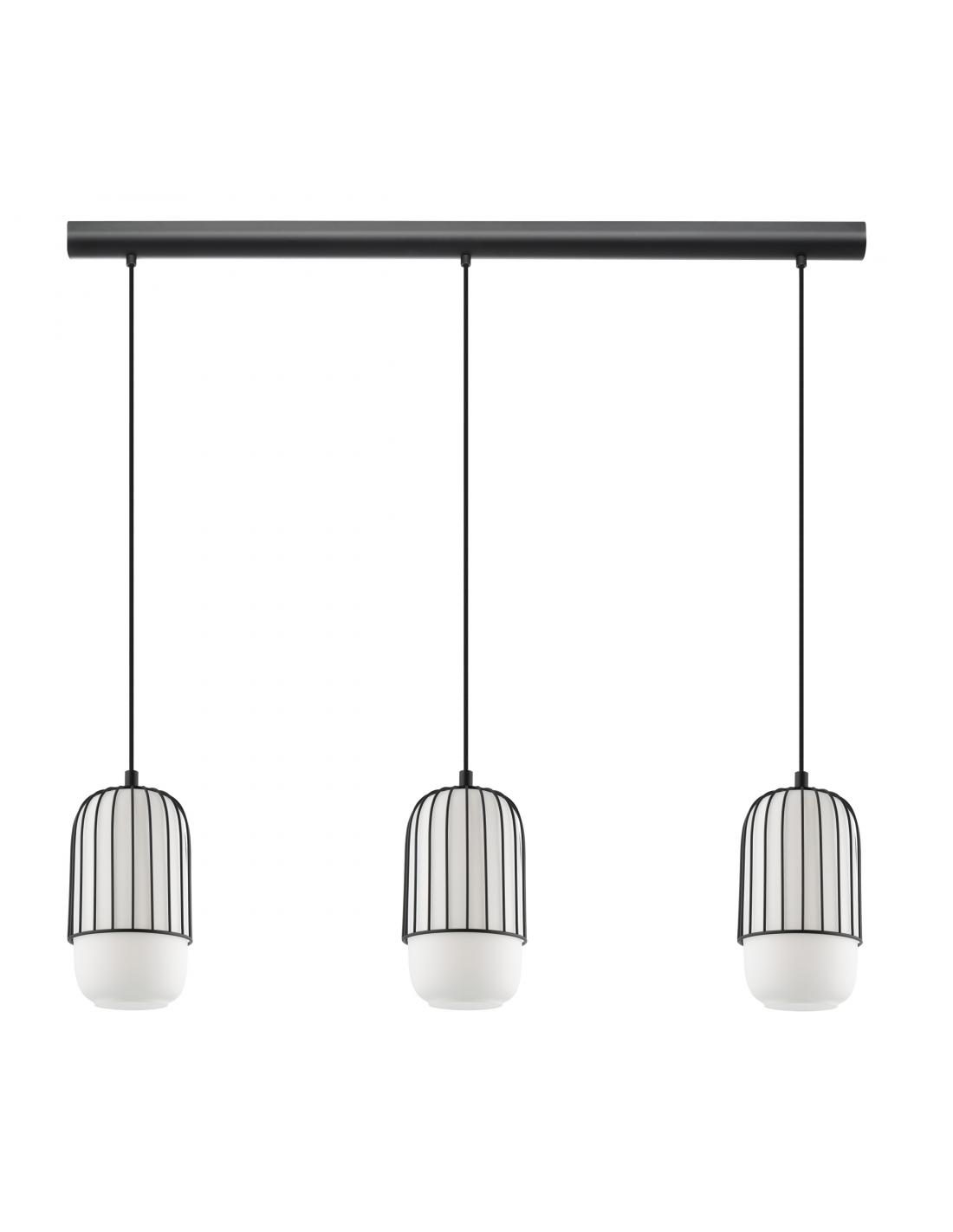 The MULEGES Lamp is a sensational Crystal Pendant Lamp, made by EGLO, in black steel and matte opaline glass in white. Requires E27 bulbs, NOT INCLUDED.