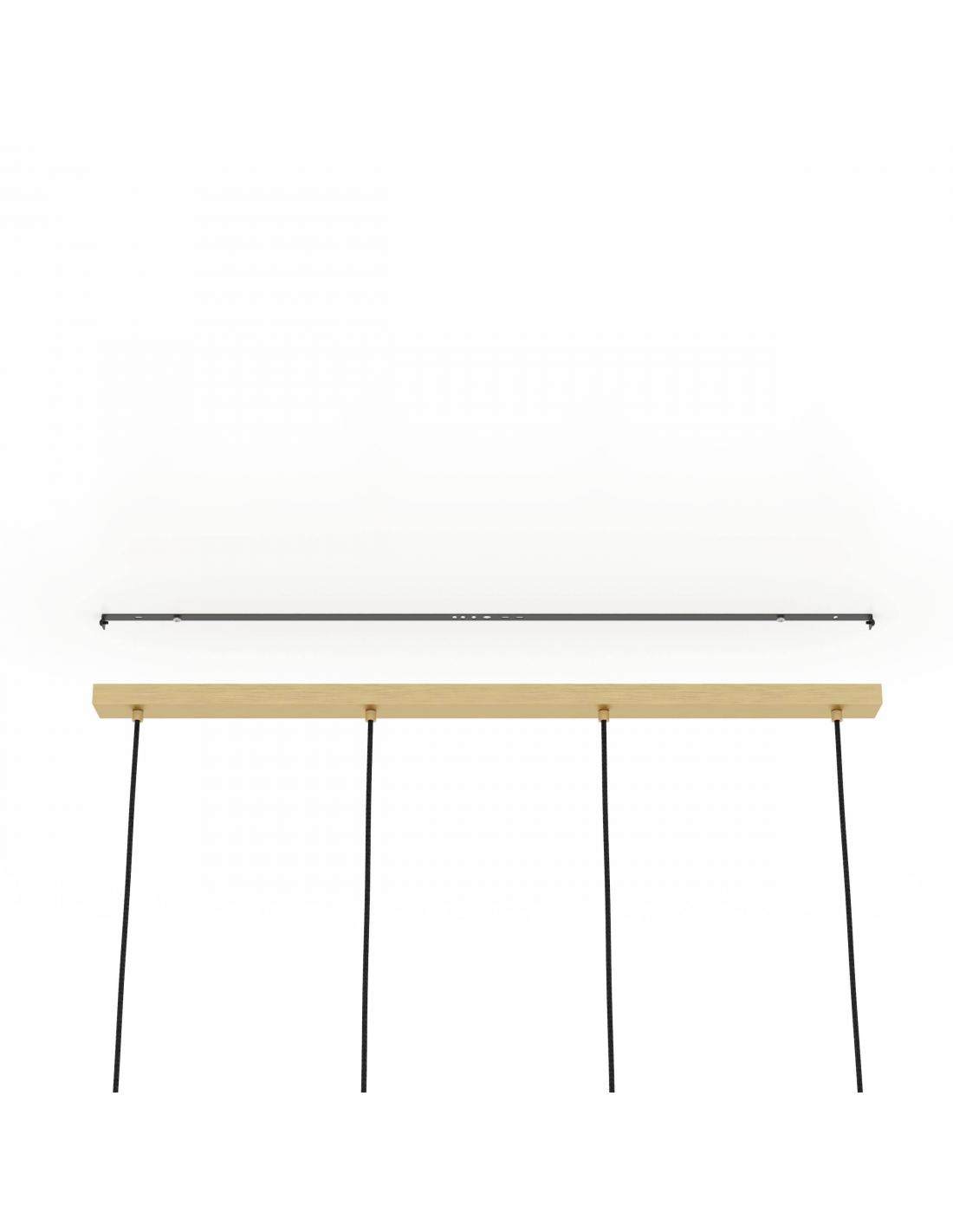 The MANZANARES pendant lamp is made up of four white glass shades with a matte opal surface, gently rounded, which are suspended from an elongated metal canopy in brushed brass with black textile cables. The combination of the lampshades with the brass brushed metal accessories completes the look of the lamp. Thanks to its elegant design, the pendant lamp adapts to different interior styles and offers modern lighting in the living room or dining room, above the table. Bulbs are not included. The lamp is suitable for any bulb with an E27 socket.