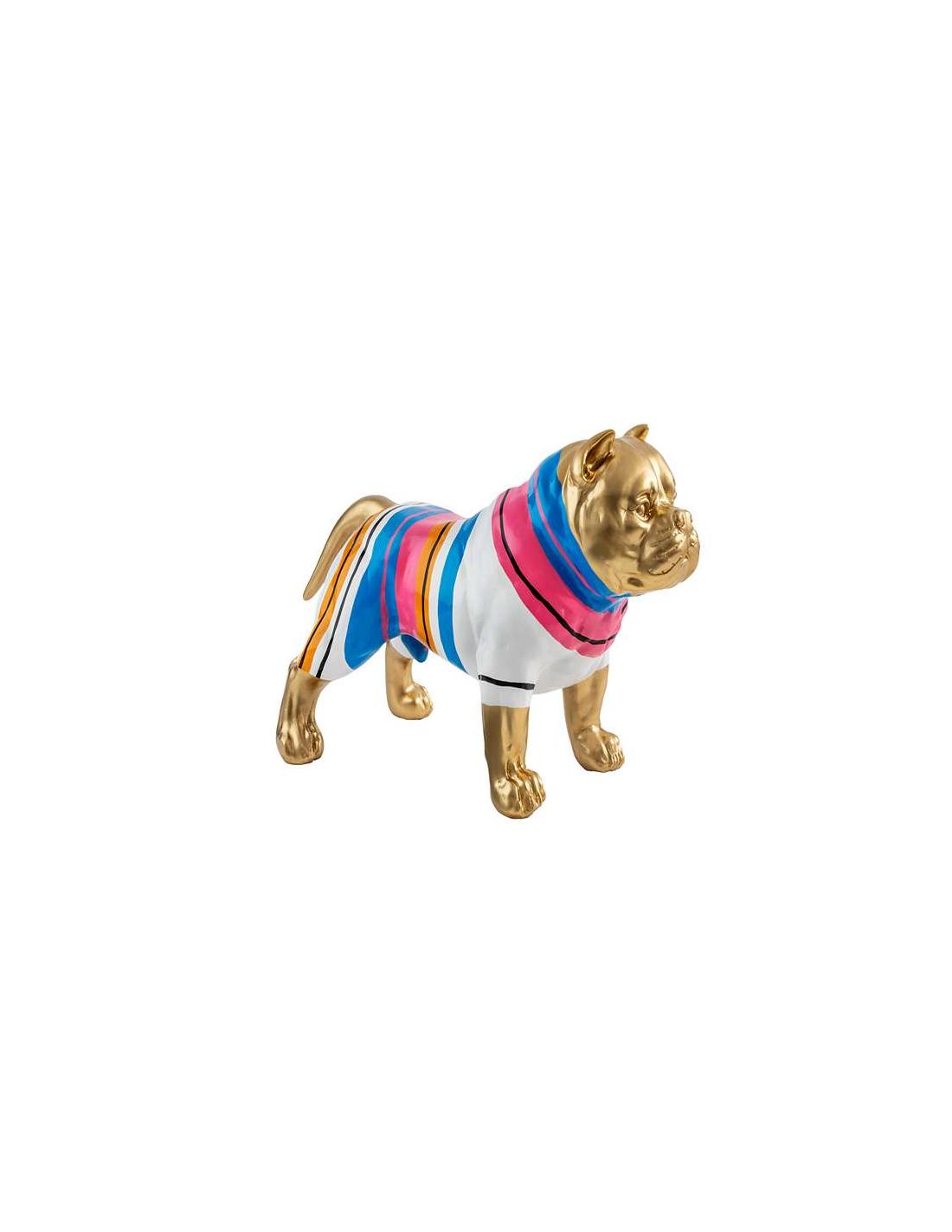 Medium size pitbull figure, made of resin. Decoration: gold paint with colored stripes.