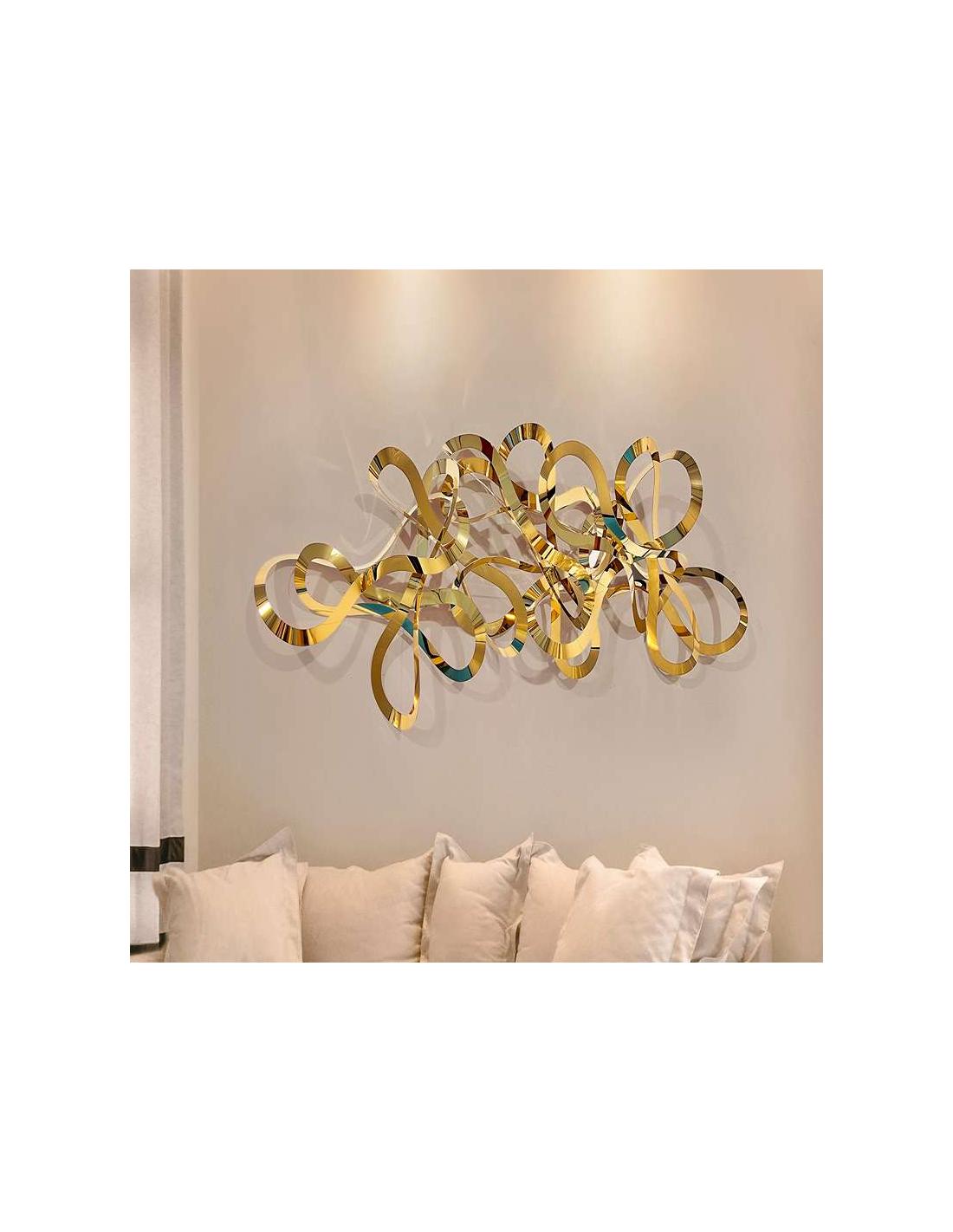 Wall sculpture with intertwined geometric figures, made of stainless steel plate finished in shiny gold plating. Prepared to hang horizontally and vertically.