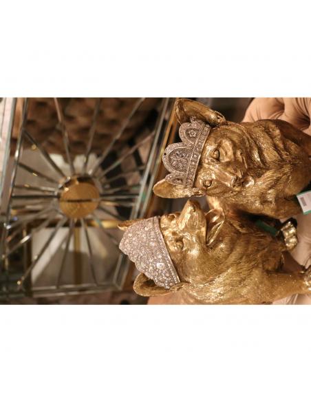 Decorative figure in the shape of a Corgi puppy, like the dogs of the Queen of England, with a royal crown and smiling appearance. This figure is ideal for animal lovers with exquisite homes. A piece made of polyresin finished by hand with a lot of detail.