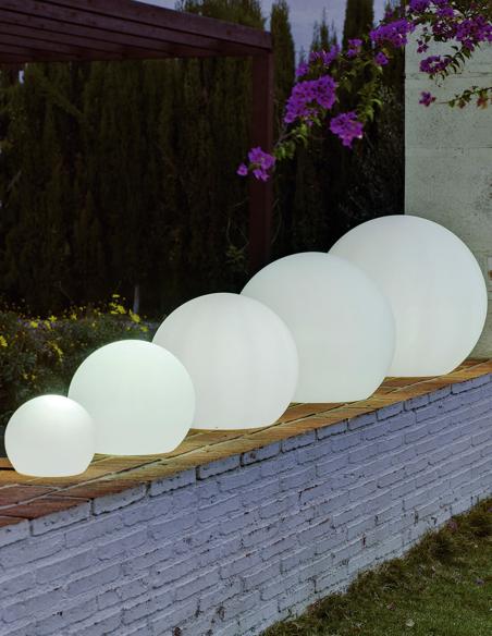 BULY 20 SOLAR SMARTTECH is an RGB ball light with lithium battery from the NEW GARDEN marca . Its lightweight structure made of polyethylene with IP68 makes it suitable for illuminating both outdoor and indoor spaces. The battery has an autonomy of approximately 6 hours, and can be through a charger or solar.