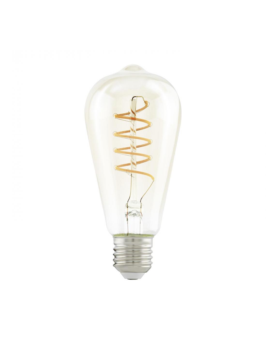 Vintage style bulb with visible led filaments emits a warm white light covered by a light amber glass and an E27 silver socket. It has a height of 142 mm and 64 mm in diameter with 2200K and 4W of power.