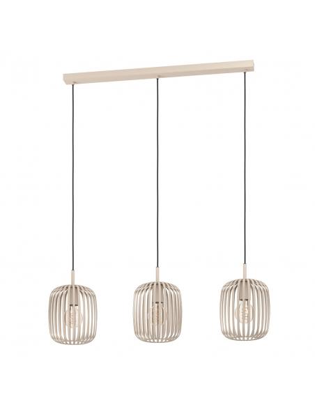 3-light hanging lamp made of steel both its base and its cage-shaped tulips, both in beige color, with adjustable wiring in black color. Perfect for installation on elongated dining tables, large work tables and for modern, romantic environments... And even Nordics. Uses 3 E27 socket bulbs, not included.