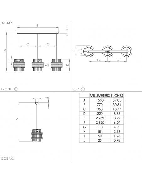 3-light hanging lamp beige steel - EGLO Oltamar