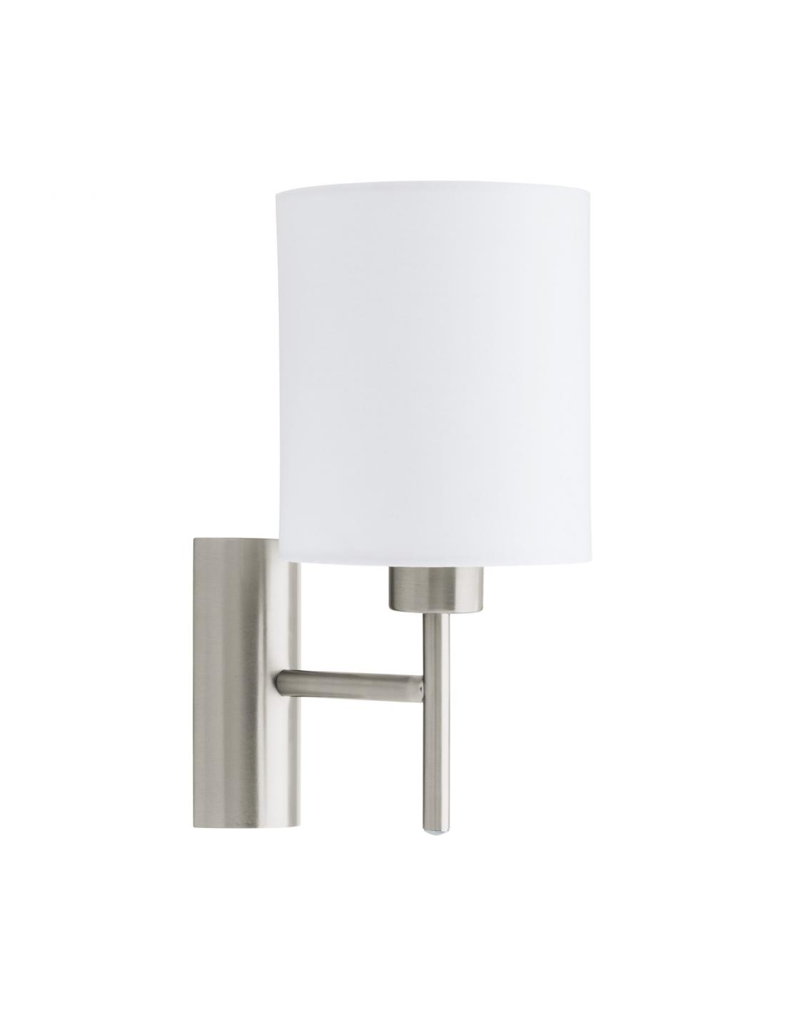 The PASTERI Lamp is a sensational Fabric Applique, made by EGLO, in matte nickel-colored Steel and white Textile. Requires E27 bulbs, NOT INCLUDED.