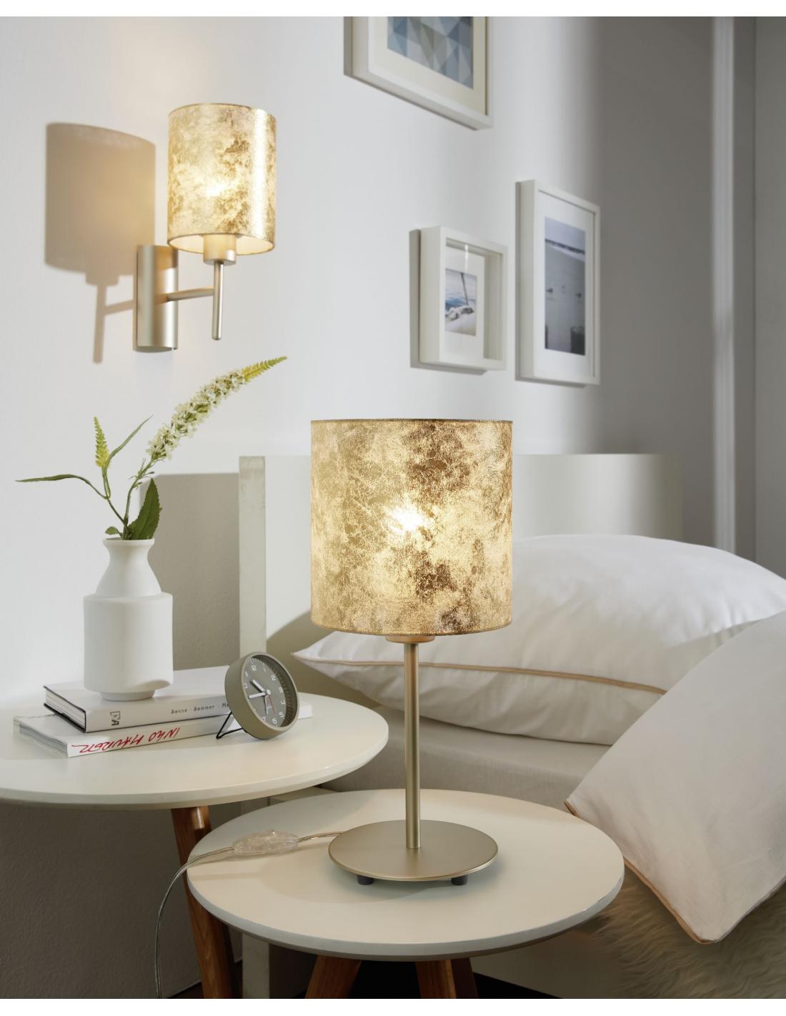 The VISERBELLA Lamp is a unique Fabric Wall Light, made by EGLO, in champagne color steel and gold color Textile. Requires E27 bulbs, NOT INCLUDED.