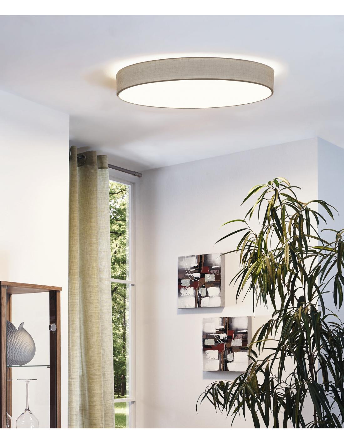 PASTERI Fabric Ceiling Light. Fabulous for Living room lamp, made by EGLO, with a white steel structure, grayish brown textile shade with white acrylic lower protective screen. Requires E27 bulbs, NOT INCLUDED.